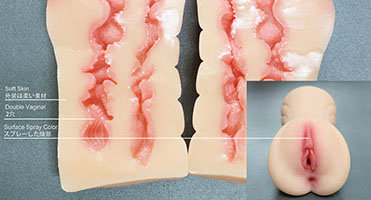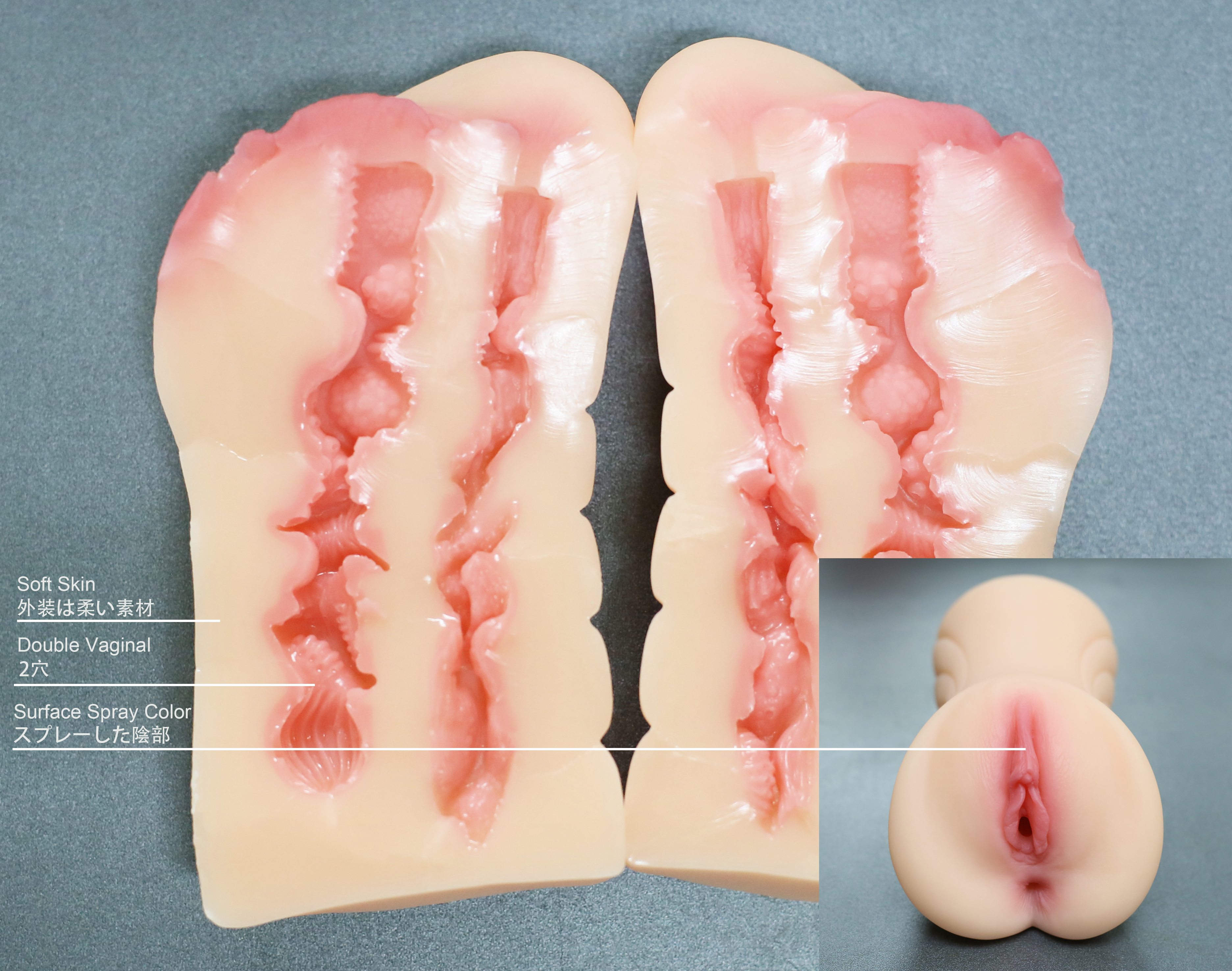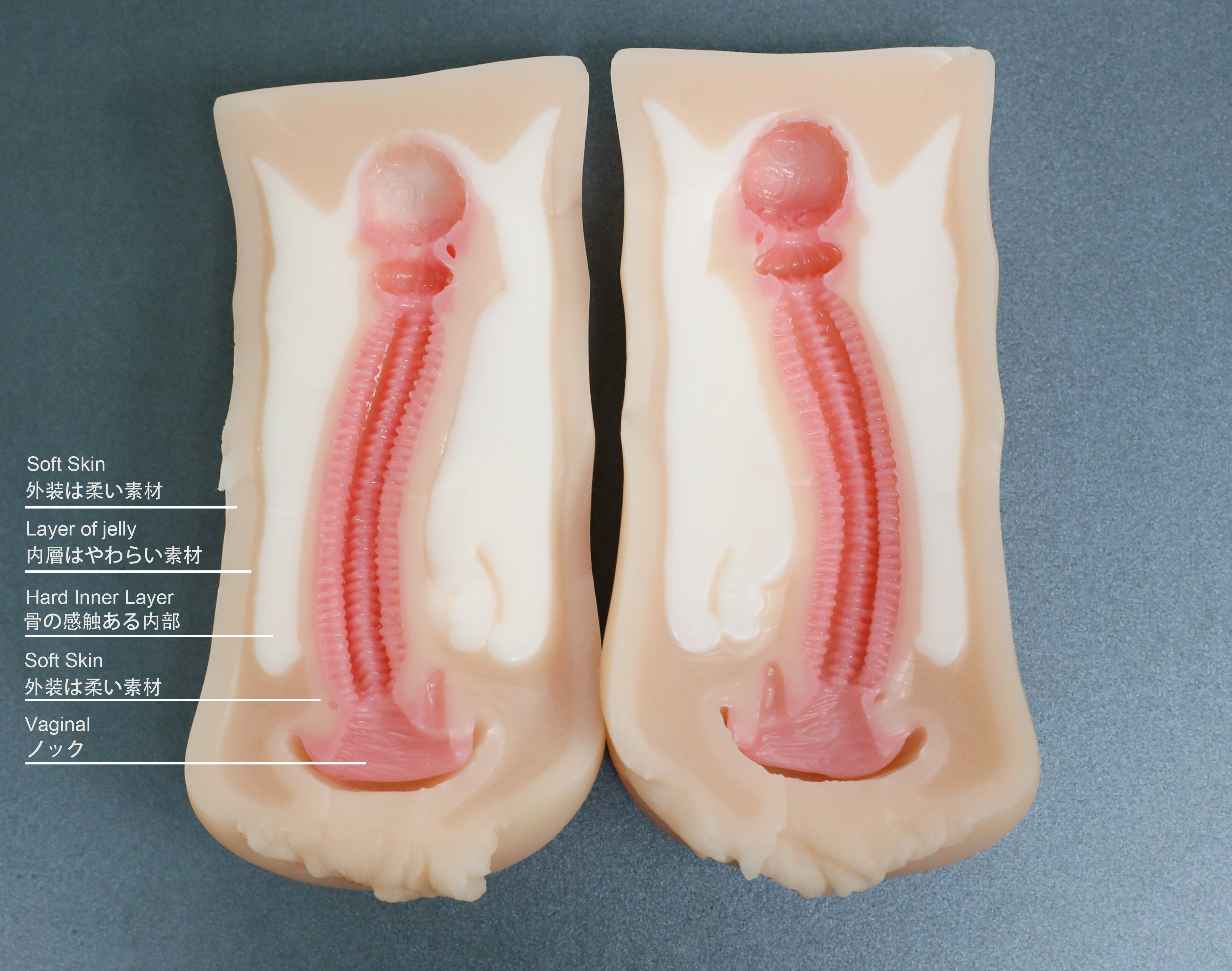 Right hand side picture show heated raw material for filling moulds streams from a pipe at the our Masturbator sex toy factory in DongGuang.